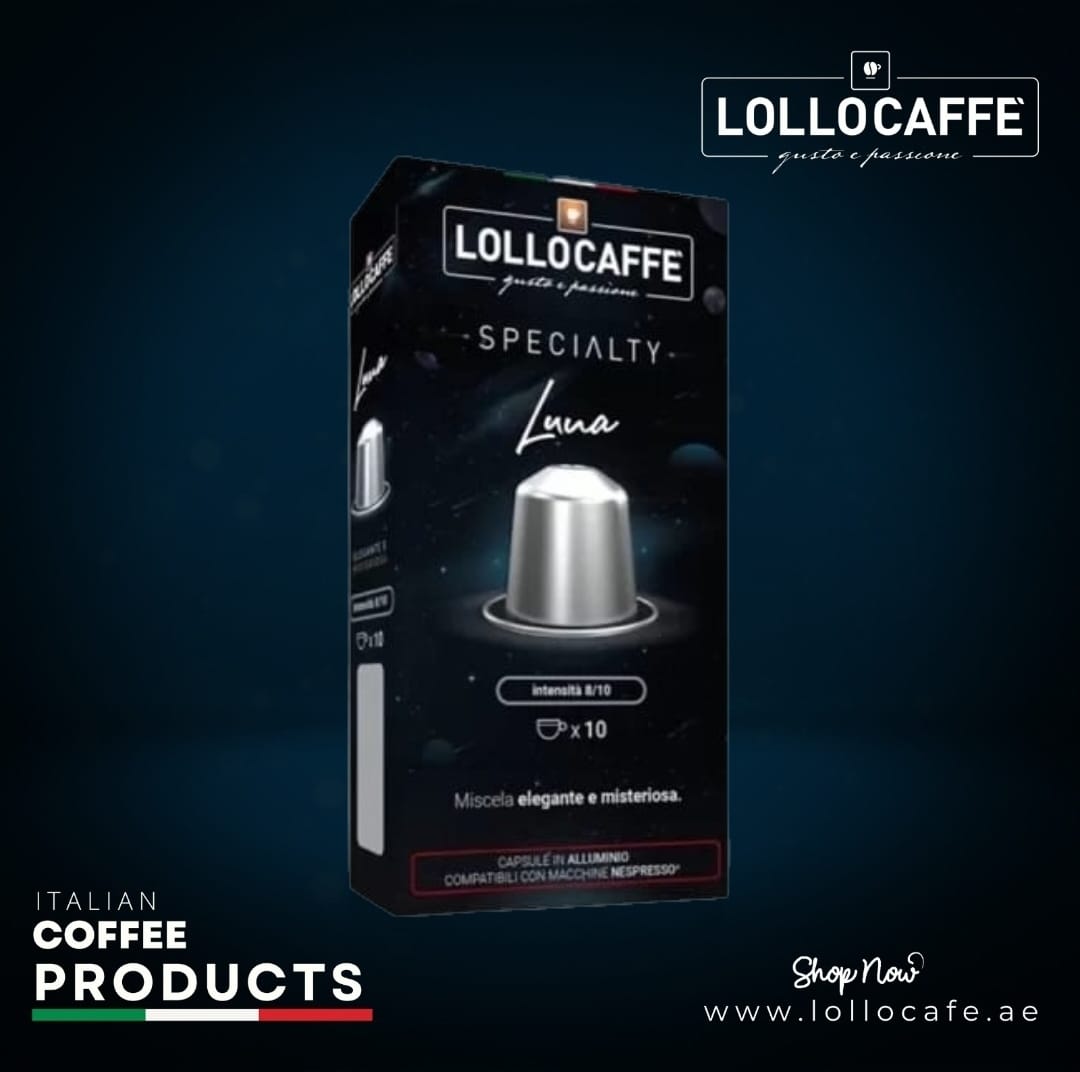 تعد كبسولات LOLLO SPECIALTY LUNA واحدة من أحدث المجموعات من الخلطات الممتازة وعالية الجودة من محمصة Lollo Caffe. أسمائهم تأتي من كواكب وآلهة أوليمبوس، وتم تسمية الخط بأكمله باسم التخصص للتأكيد على الجودة العالية والرائحة الفريدة للخلطات الستة. إنه مزيج مثالي من الطعم والرائحة الممتازة، بالإضافة إلى الطابع الفريد للقهوة الإيطالية القادمة مباشرة من نابولي. تحتفظ كبسولات الألومنيوم بالنضارة والرائحة بشكل جيد، وتقدم القهوة مثل مقهى إيطالي حقيقي.